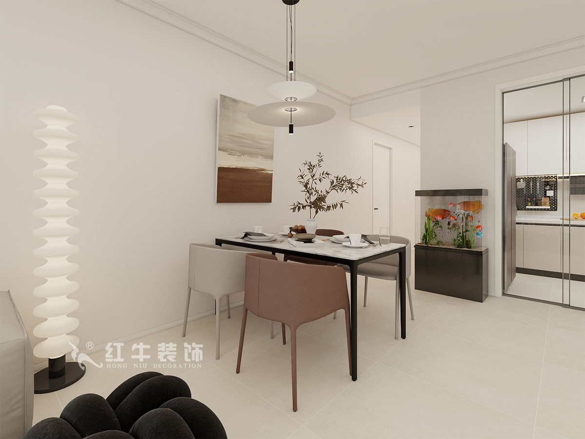房間保留,結(jié)構(gòu)上不做什么大的改動(dòng),次臥和衛(wèi)生間墻體做了一個(gè)重組,保證臥室的舒適度,衛(wèi)生間干濕分區(qū),功能齊全??蛷d增加一個(gè)餐邊柜,廚房的墻體進(jìn)行改動(dòng),把儲(chǔ)藏室的門做了一個(gè)隱形門。
