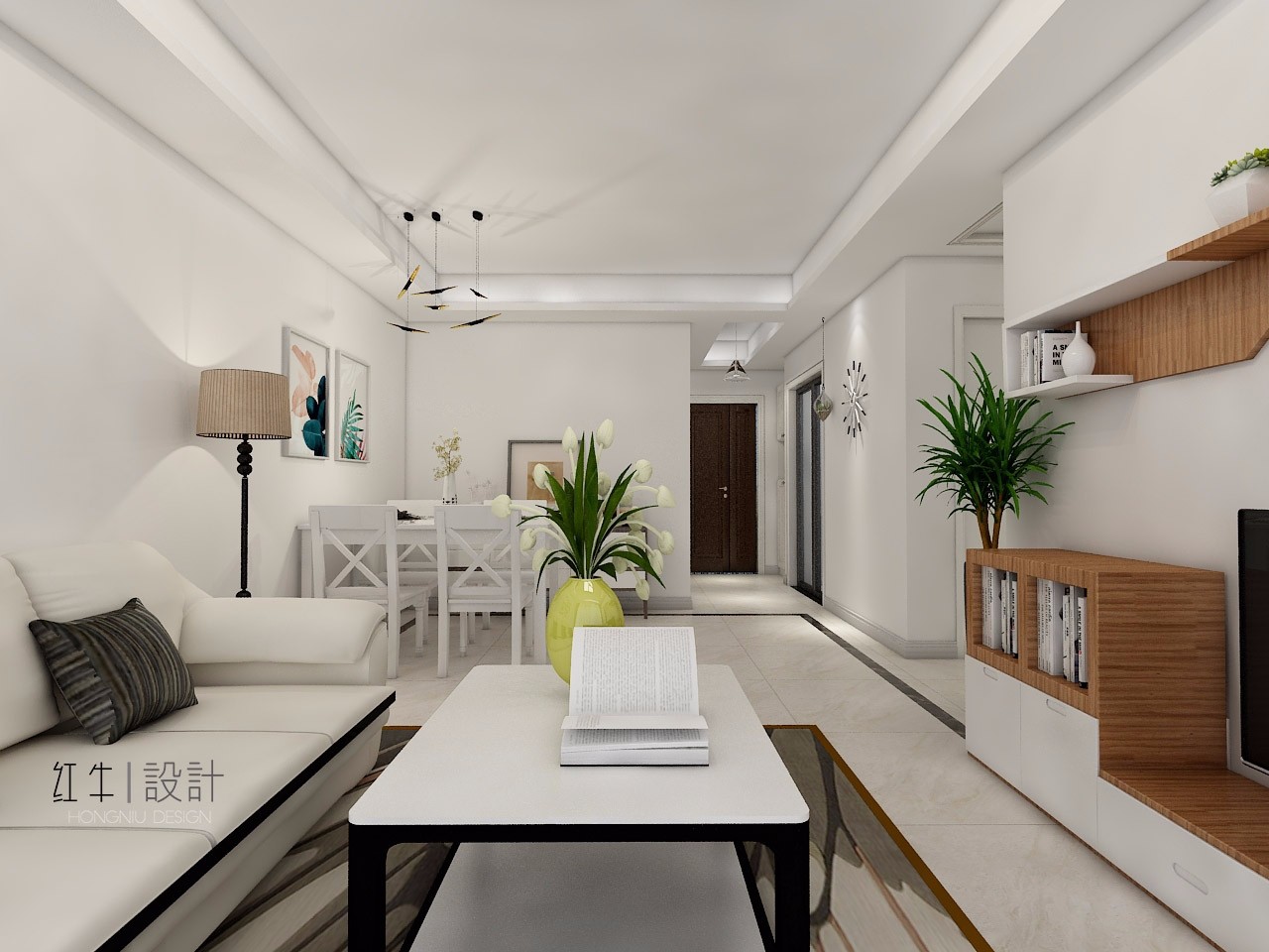 我們先看一下客廳,其墻壁、頂面都是白色,甚至沙發(fā)、茶幾也是白色,透露出一種簡(jiǎn)單純凈的感覺(jué)。