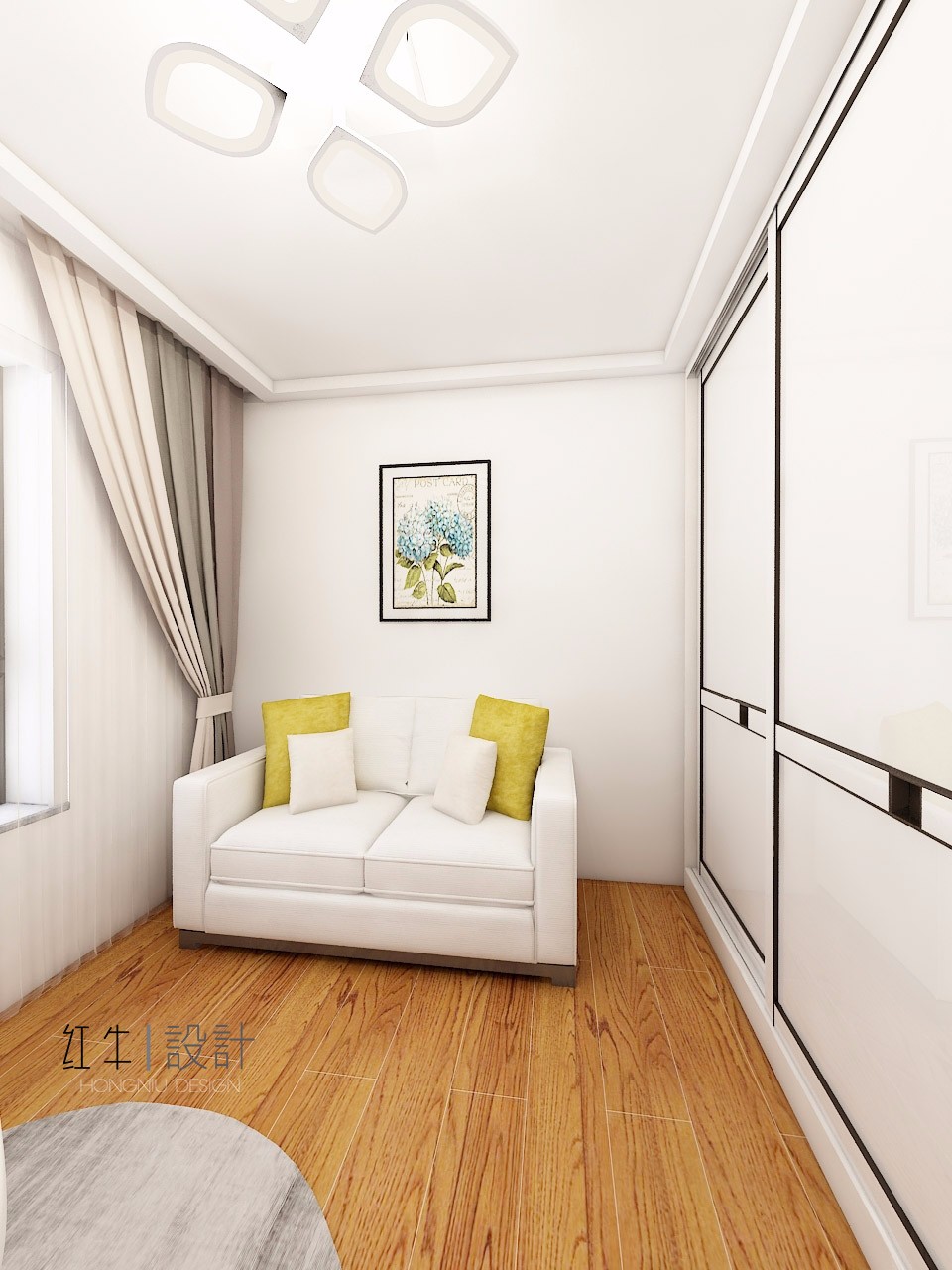次臥的空間較小,但是設(shè)計(jì)簡(jiǎn)潔明了,經(jīng)久耐看,充滿線條之美。