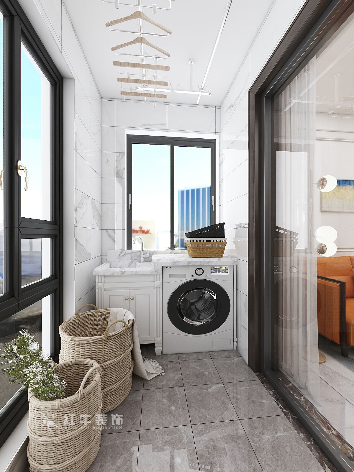 把廚房陽臺的空間利用到衛(wèi)生間里面,作為淋浴間,這樣不僅把原本浪費(fèi)的空間利用起來,還可以利用原來干區(qū)臺盆空間做儲物柜。