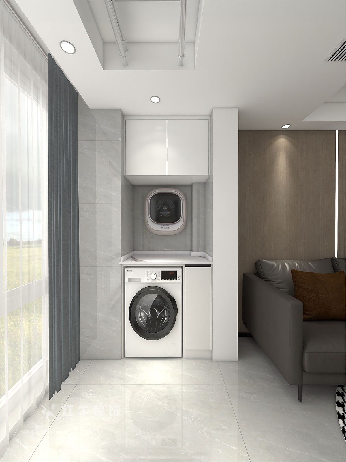 本案客戶夫妻兩,小孩偶爾來住。將次臥空間一分為二,一般作為家政柜儲(chǔ)物空間,一邊作為小孩居住空間。衛(wèi)生間孔家通過改造,變成干濕分離,互不干擾。