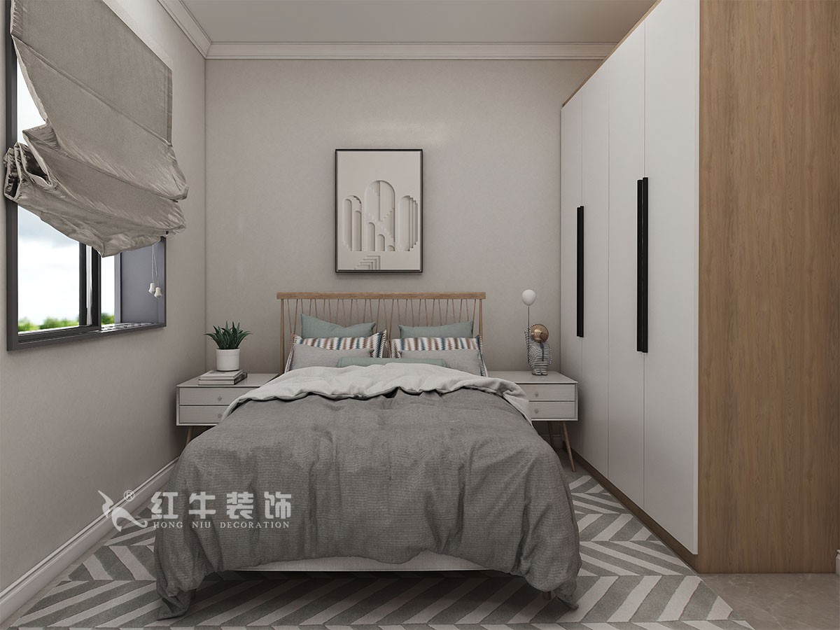 此案主要是一家兩口居住,在舒適度上要求比較高。臥室是整套房子中最私人也是最體現(xiàn)出溫馨休閑感的空間,在設(shè)計(jì)時(shí)體現(xiàn)出靜謐舒適的感覺,并且與其他空間明顯的區(qū)別,把原本北臥室改成客廳,這樣舒適度更好,區(qū)域劃分明顯,動(dòng)靜分離。吊頂簡潔大氣,配以輕現(xiàn)代家具,完美闡釋了簡約風(fēng)格。整體現(xiàn)代簡約風(fēng)格的設(shè)計(jì),搭配上顯眼的綠色植物讓整個(gè)空間呈現(xiàn)出一種生機(jī)勃勃的自然美。